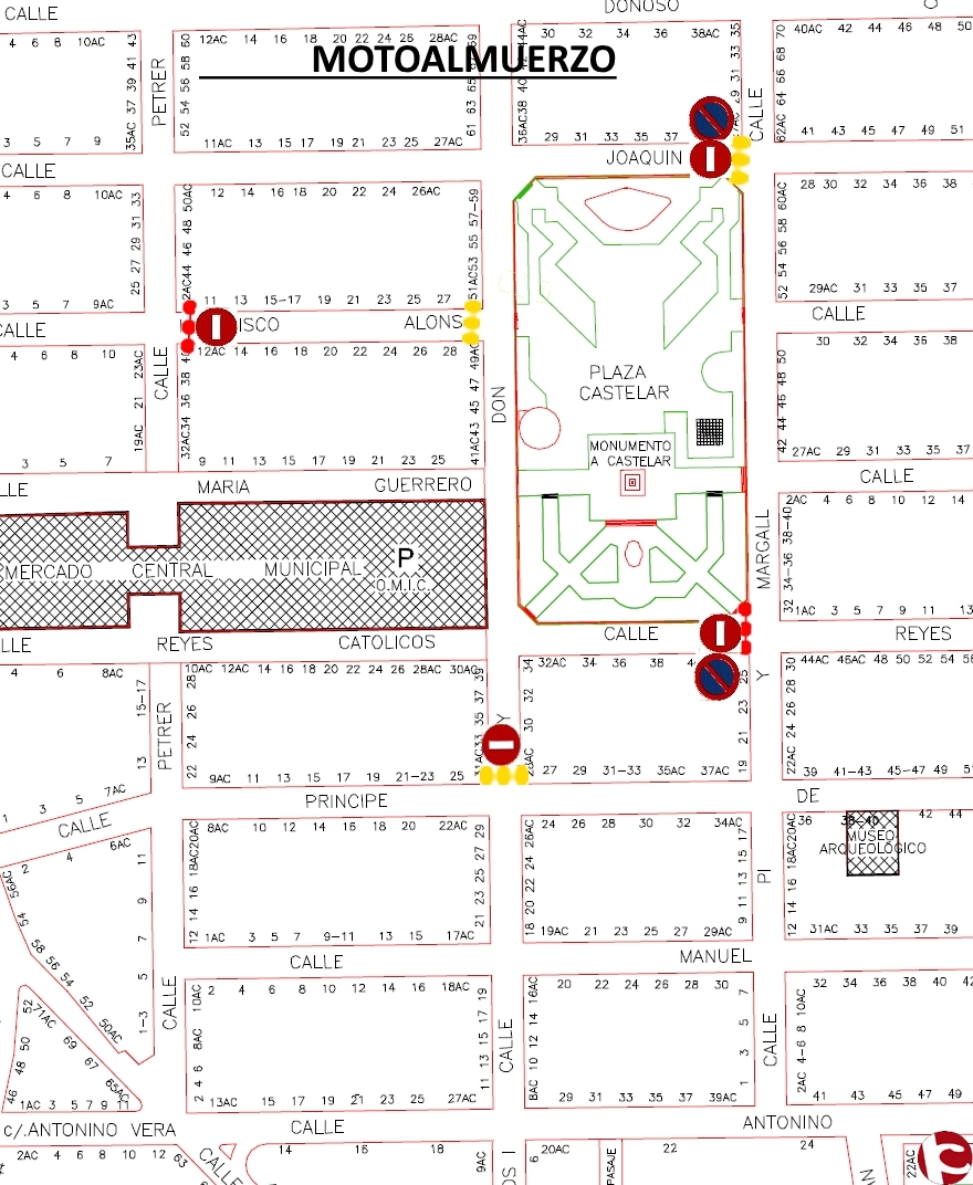 Sirva El presente al objeto de comunicarle el acto que consta, (MOTOALMUERZO) que tendrá lugar el DOMINGO día 22 de MAYO del presente año, rogando tengan en cuenta el desarrollo del presente en aquellas cuestiones relativas al servicio que desarrollan, informándoles que en el plano constan aquellas calles que estarán cortadas al tráfico DESDE LAS 07:00 HASTA LAS 18:00 HORAS