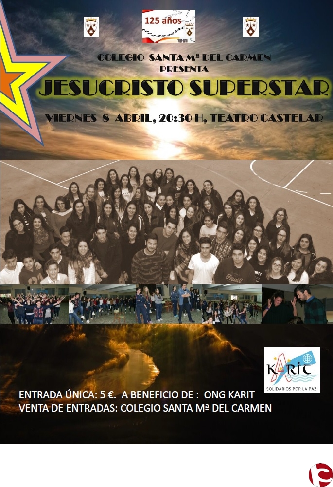 El próximo 8 de abril, a las 20:30, los alumnos del colegio Santa María del Carmen de Elda representarán el musical Jesucristo Superstar en el Teatro Castelar de Elda.