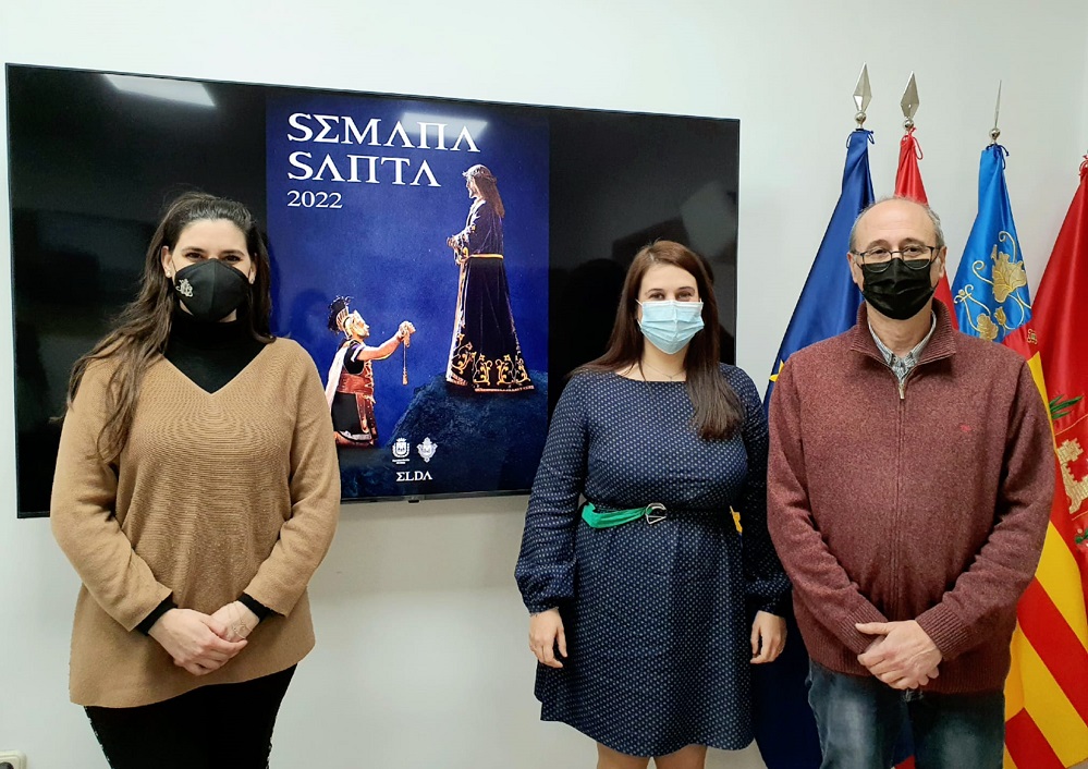 La concejala de Fiestas, Lorena Pedrero, acompañada de José Pascual, presidente de la Hermandad de Cofradías de Semana Santa de Elda, y de María Botella, miembro de la Cofradía de Nuestro Padre Jesús de Medinaceli, ha recordado que “todas las fiestas se han visto afectadas por la pandemia, pero la Semana Santa fue la primera que se suspendió. Nos alegra informar de que nuestras fiestas y tradiciones, como es la Semana Santa, vuelve a tomar las calles de nuestra ciudad. Son más de 1.000 cofrades repartidos en ocho cofradías y con una gran riqueza cultural y patrimonial”.