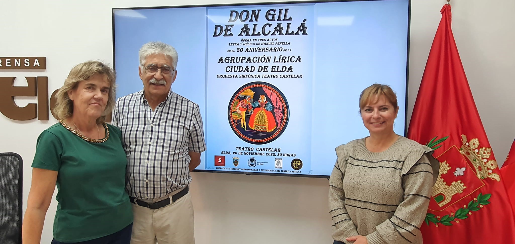 La concejala de Teatro, Rosa Vidal, acompañada de Paco Martínez, secretario de la Agrupación Lírica Ciudad de Elda, y de la presidenta de la misma, María Dolores Zafra, han presentado esta mañana una gala que, en palabras de Vidal, “servirá para conmemorar la creación de una agrupación que cuenta ya con 35 títulos y que de forma ininterrumpida, salvo por la pandemia, han llevado la zarzuela no sólo a Elda, también a toda la provincia”.