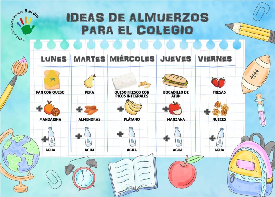 En el siguiente cuadro podréis encontrar algunas ideas para vuestros almuerzos para venir al cole y recuerda no traer residuos. Además, no olvides que la mejor bebida es el AGUA por muchos motivos, como por ejemplo: