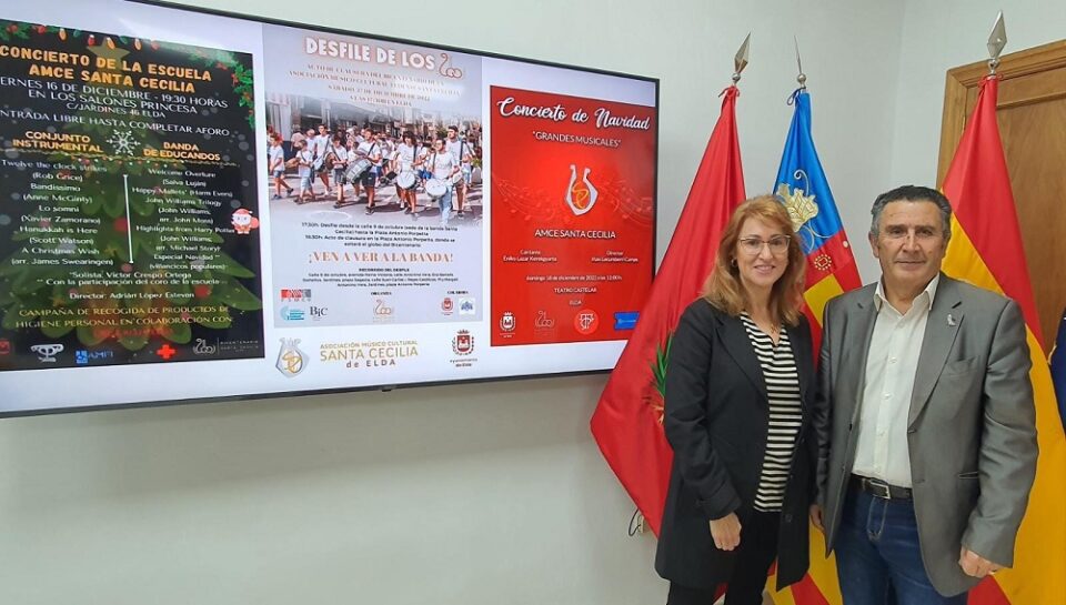 En la mañana de hoy se han presentado nuevos actos que llevará a cabo la AMCE Santa Cecilia de Elda el próximo fin de semana, con motivo de la celebración de su bicentenario. Un fin de semana repleto de música que comenzará el viernes 16 con el concierto de la escuela en los Salones Princesa, a partir de las 19:30 horas y con entrada libre hasta completar aforo. Los actos seguirán el sábado 17 con el Desfile de los 200, que pondrá fin a los actos del bicentenario. Y por último, continuando la tradición, el domingo 18 se llevará a cabo el Concierto de Navidad, a las 12:00 horas en el Teatro Castelar.