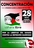 La Asociación Sáhara Libre Independiente de Elda ha organizado, como todos los meses, una concentración silenciosa que va a tener lugar el próximo sábado 28 de mayo, a las 12:00, frente a la sede del PSOE de Elda, en la C/ Francisco Alonso, nº 24.