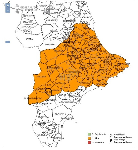 5 de enero de 2024.- El Ayuntamiento de Elda, a través de las concejalías de Seguridad Ciudadana y de Fiestas, ha determinado que la Bajada de Antorchas de Bolón de esta tarde se realice exclusivamente con los dispositivos de tecnología LED debido a la previsión meteorológica de fuertes rachas de viento en el momento de iniciarse el descenso. El servicio 112 de la Generalitat Valenciana ha activado la alerta naranja por riesgo de incendios forestales, lo que automáticamente impide la utilización de las antorchas de fuego.