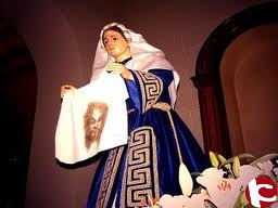 La cofradía de la Santa Mujer Verónica llevó la imágen a casa de Raquel Botella con motivo de su 100 cumpleaños
