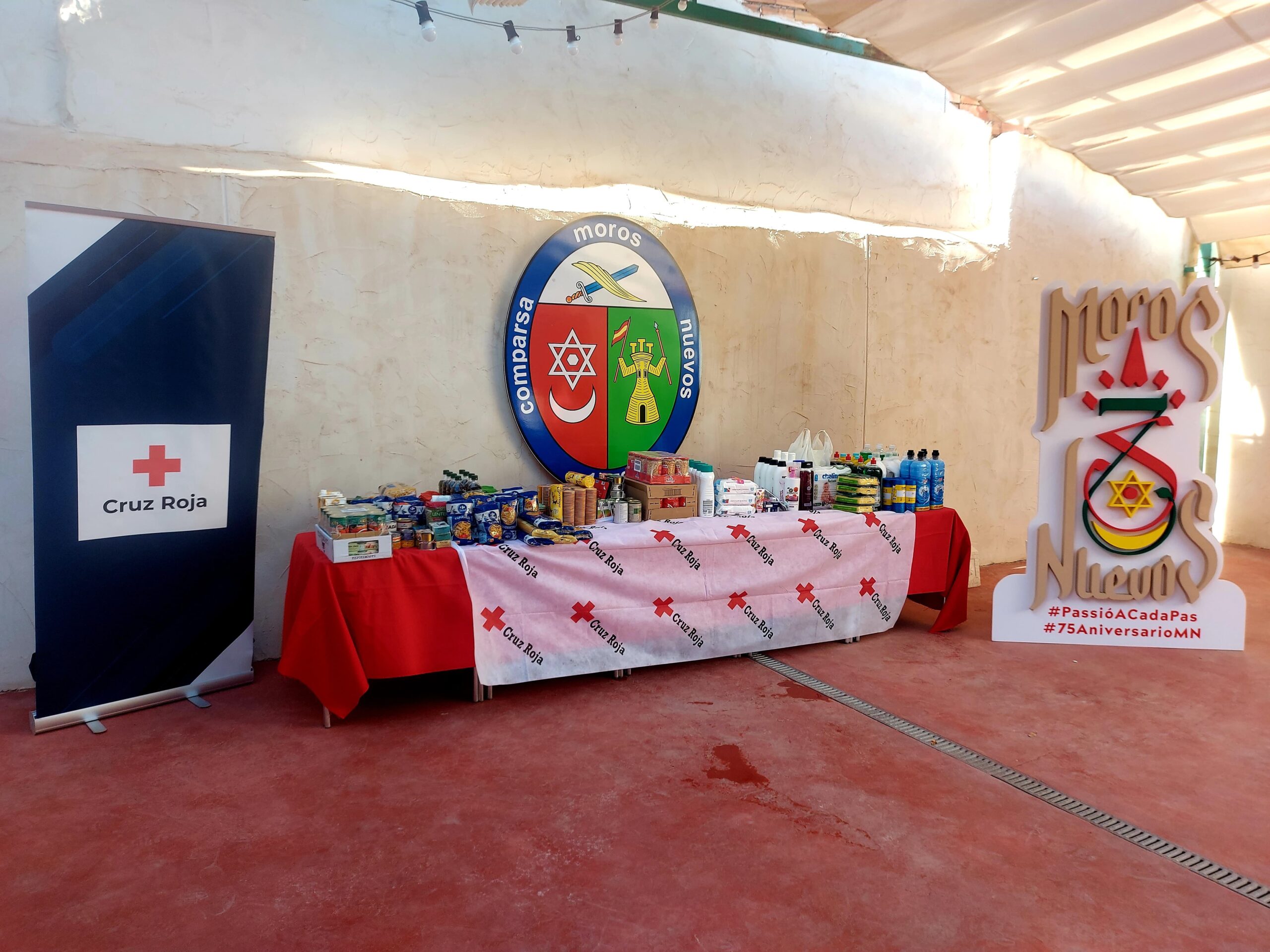 Asimismo, y por novena edición consecutiva, esta Comida de Navidad presentaba un fin solidario, pues la Directiva de los Moros Nuevos solicitó a cada comparsista la aportación voluntaria de ali- mentos no perecederos, o bien productos de higiene personal y lim- pieza del hogar, que se donarán íntegramente a Cruz Roja Petrer, para ayudar a esta entidad a cubrir sus necesidades de cara a la próxima Navidad. En este sentido, la respuesta de la comparsa fue masiva y se han conseguido recaudar un total de 390 productos de los anteriormente descritos, que contribuirán a colaborar en la campaña navideña que Cruz Roja realiza cada año.