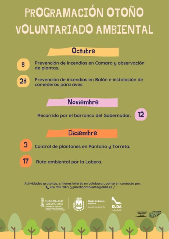 Las actividades son gratuitas y la ciudadanía puede apuntarse llamando al teléfono 966 989 207 o enviando un email a medioambiente@elda.es.
