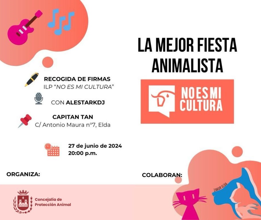 «Desde hace años, la sociedad eldense ha demostrado ser un ejemplo de transformación y avance social en la defensa y protección del bienestar de todos los animales. Este evento es una oportunidad para reafirmar nuestro compromiso con la protección animal y para movilizar a la comunidad en apoyo a la ILP ‘No Es Mi Cultura'», ha afirmado Cristina Rodríguez.