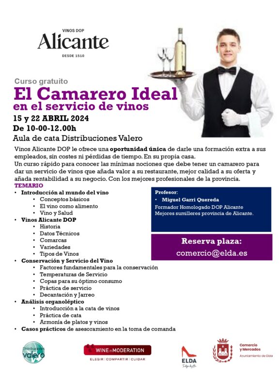 Miguel Garri, formador homologado del Consejo regulador de la DOP Vinos de Alicante, es Nariz de Oro y mejor sumiller de la Comunidad Valenciana, ha afirmado que «es muy importante contar con camareros formados y con amplios conocimientos porque redunda en el beneficio de los restaurantes. El curso es corto, pero muy intenso porque es una iniciación al mundo del vino, tratando temas como la elaboración de vinos, información sobre la DOP Vinos de Alicante, la conservación y el servicio del vino y una introducción a la cata de vinos».