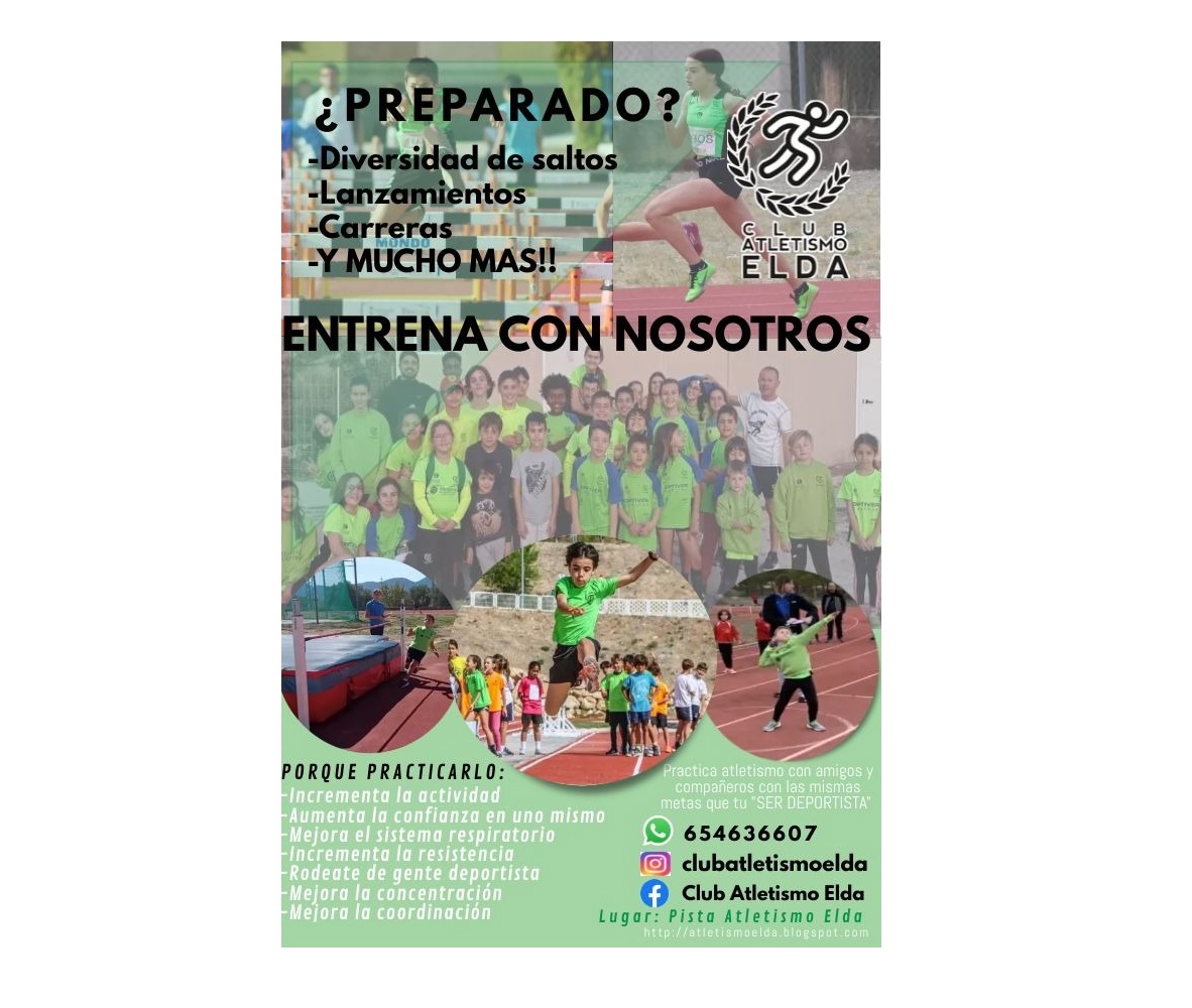 El Club Atletismo Elda te ofrece la posibilidad de acudir a partir del lunes 4 de septiembre. Pueden acudir los niños y niñas a partir de 5 años en adelante. Los niños y niñas pasarán un rato divertido, haciendo deporte de una forma muy dinámica y trabajando muchos aspectos como la coordinación. Habrán varios grupos de entrenamientos según las edades y con varios monitores.