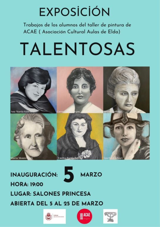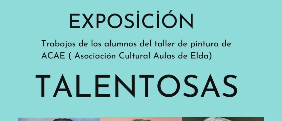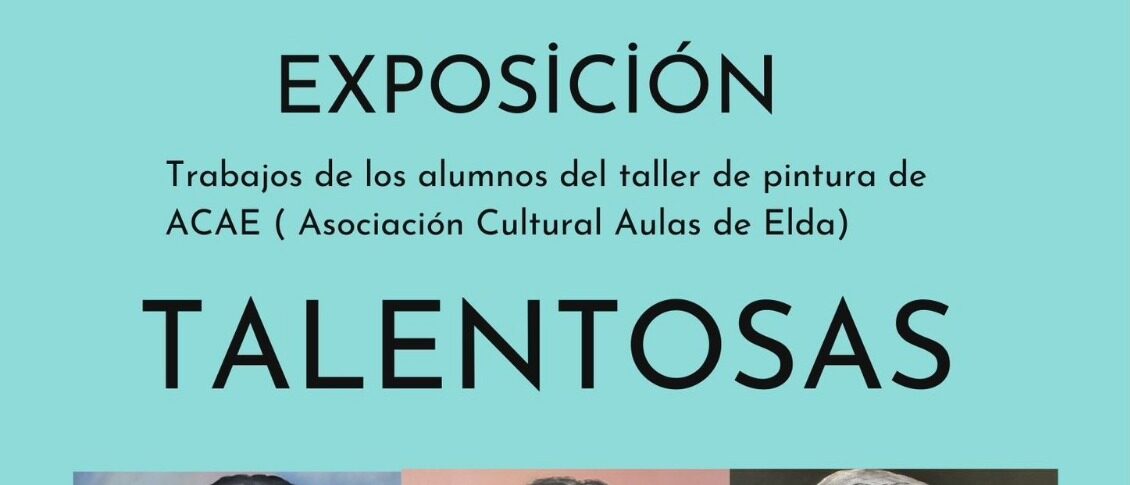 La exposición ‘Talentosas’, organizada por la Asociación Cultural Aulas de Elda (ACAE) y compuesta por trabajos del alumnado del taller de pintura, cambia finalmente su ubicación y se celebrará en los Salones Princesa en lugar de la Casa Grande del Jardín de la Música, como estaba previsto inicialmente.
