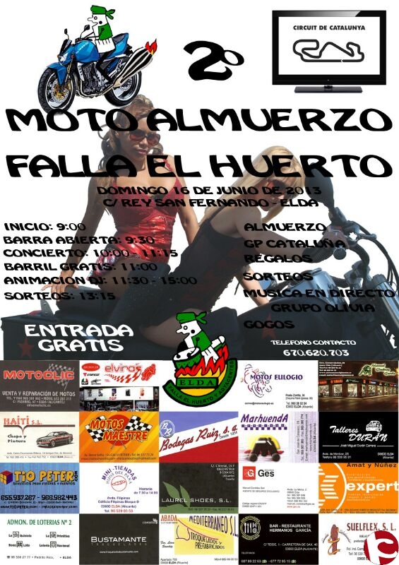 La Falla El Huerto, organiza un moto almuerzo para el 16 de Junio a partir de las 9 de la mañana