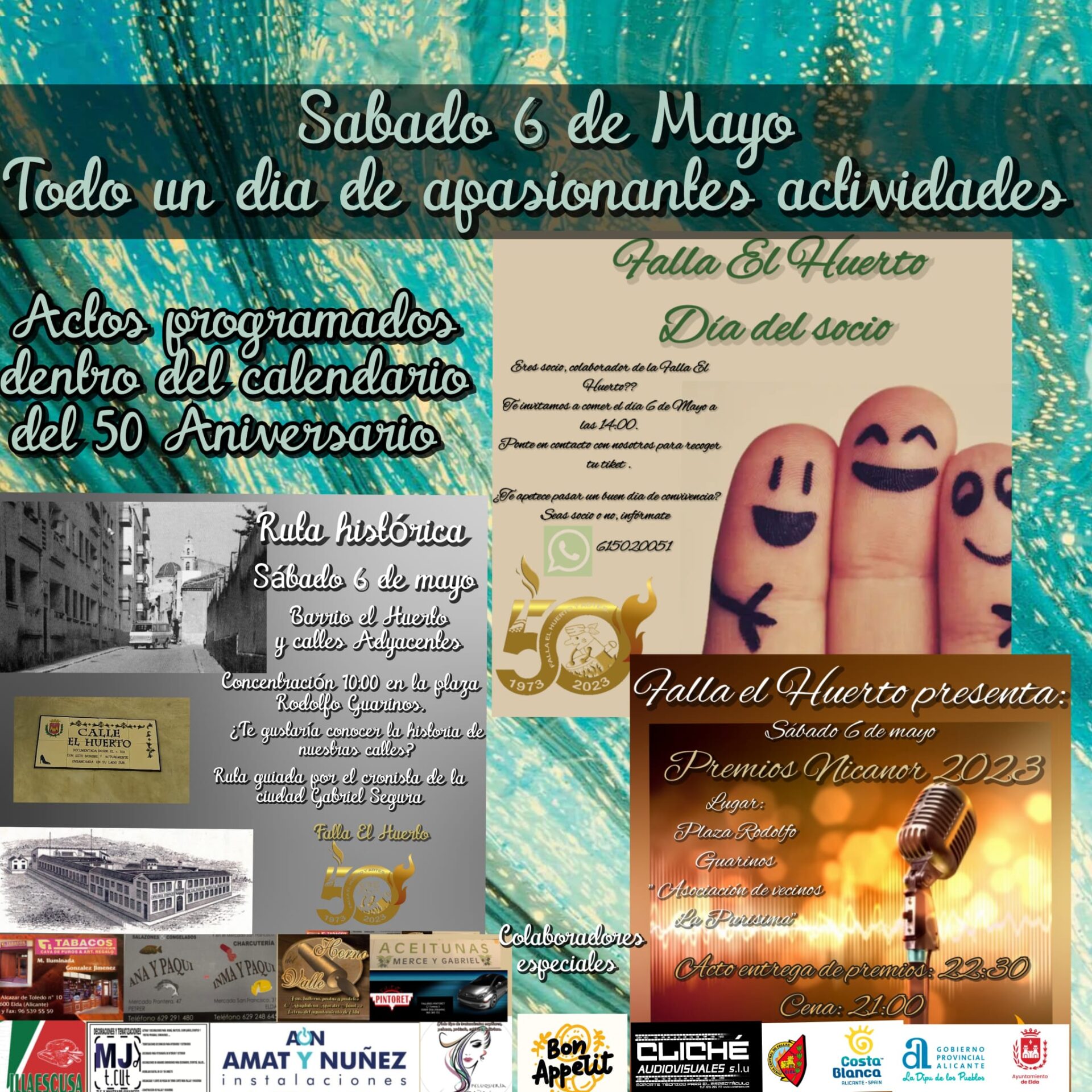 Con motivo de la celebración del 50º aniversario de la Falla El Huerto y Adyacentes, y siguiendo con el calendario de esta efemérides, el próximo sábado tendrán lugar los siguientes eventos por las calles de nuestro barrio y la Plaza Rodolfo Guarinos de Elda: