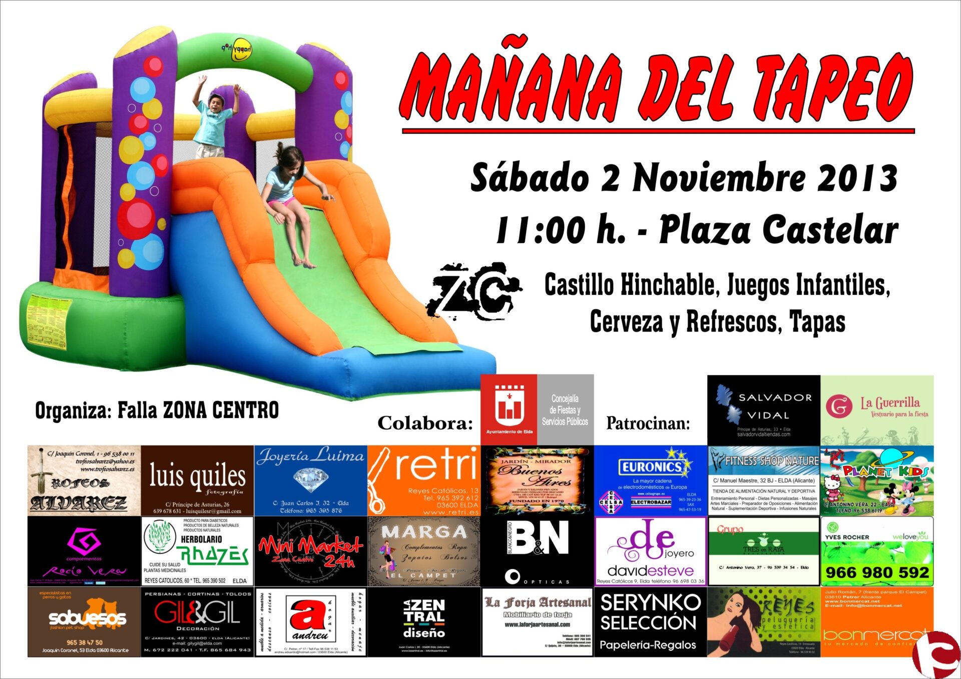 La Falla Zona Centro nos ha hecho llegar el cartel de la MAÑANA DEL TAPEO que organiza para el próximo sábado 2 de Noviembre en la Plaza Castelar de Elda.