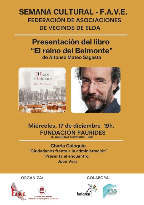 • Miércoles 17 de diciembre: Presentación del libro “El reino de Belmonte”, de Alfonso Mateo Sagasta, y charla coloquio “Ciudadanos frente a la administración”.