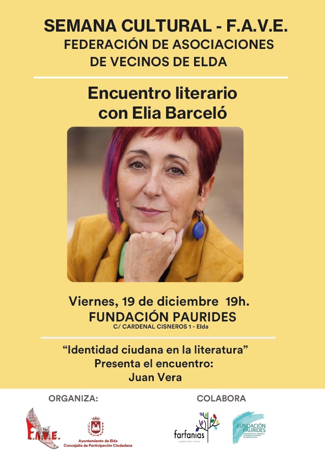 • Viernes 19 de diciembre: Encuentro literario con Elia Barceló y charla coloquio “Identidad ciudadana en la literatura”.