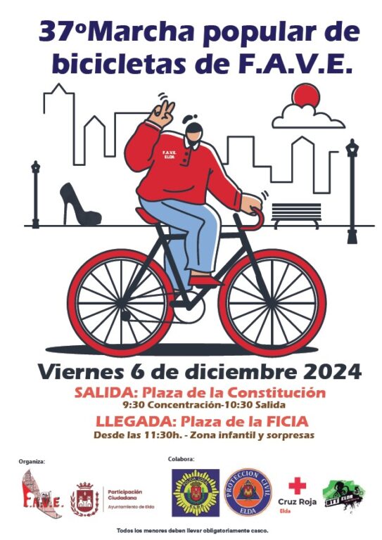 2 de diciembre de 2024.- El Ayuntamiento de Elda, a través de la Concejalía de Participación Ciudadana, y la Federación de Asociaciones de Vecinos de Elda (FAVE) organizan un año más la tradicional Marcha Popular de Bicicletas para conmemor el 6 de diciembre, Día de la Constitución. Así lo han anunciado esta mañana la concejala de Participación Ciudadana, Lorena Pedrero, y la presidenta de la Fave, María Salud Corbí.
