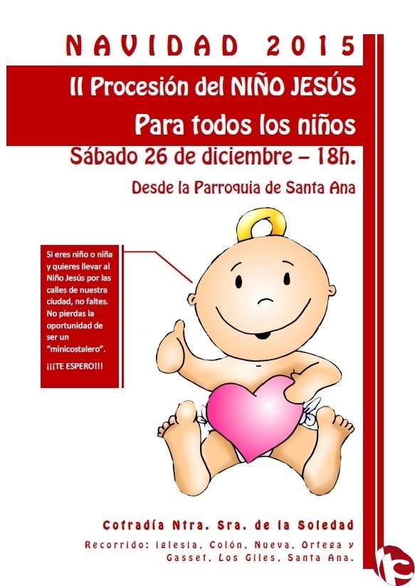 El sábado 26 se celebró, desde la Parroquia de Santa Ana, la procesión del Niño Jesús, en la que los niños y niñas de la ciudad fueron los protagonistas, ya que se trata de una procesión y desfile pensado para ellos.