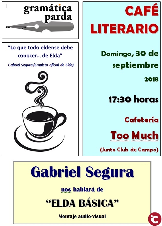 El próximo domingo, 30 de septiembre, la Asociación de escritores Gramática Parda, inaugura el presente curso cultural con un Café literario. Tendrá lugar a las 17:30 horas en la cafetería Too Much (junto a Club de Campo).