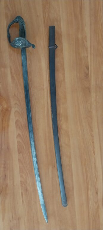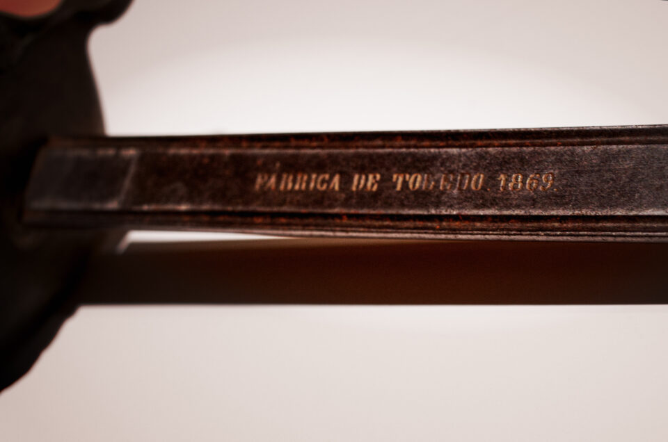Se trata de una pieza única, de un gran valor histórico para nuestra fiesta, que lleva grabada en la hoja del sable la inscripción “Fábrica de Toledo 1869”, poniendo de manifiesto la fiesta de Moros y Cristianos que tenía lugar durante el S. XIX en nuestra ciudad, y de la que han sido pocos los elementos de aquellos