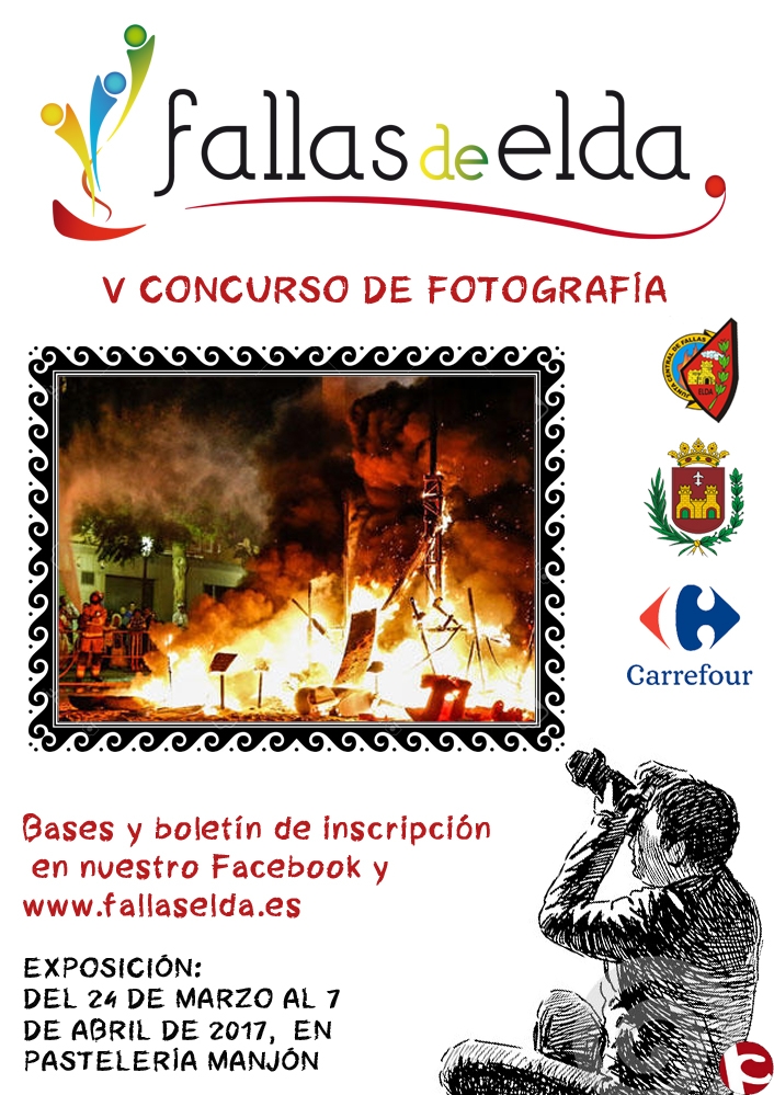 Este concurso pretende revivir a través de la mirada de los fotógrafos, tanto profesionales como aficionados, la celebración de las pasadas Fallas de Elda 2016. Los participantes interesados podrán consultar las bases del concurso y descargar el boletín de inscripción en la web www.fallaselda.es. Asimismo, deberán realizar la entrega de obras en mano los miércoles en horario de Secretaría de JCFE, de 20:30 a 21:30 en El Alminar, hasta el miércoles 22 de febrero. La entidad premiará los tres mejores trabajos con una cesta de productos de alta gama patrocinada por Carrefour.