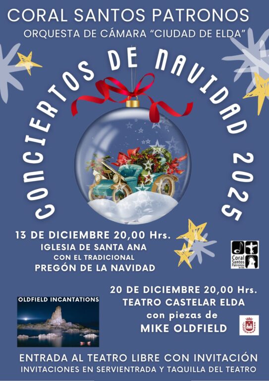 Elda se prepara para disfrutar de una de sus citas culturales más emblemáticas: el Concierto de Navidad 2025 ofrecido por la Coral Santos Patronos y la Orquesta de Cámara ‘Ciudad de Elda’. El evento tendrá lugar el próximo 20 de diciembre a las 20:00 horas en el Teatro Castelar. La entrada es libre con invitación, que estará disponible tanto online en Servientradas y en la taquilla del teatro.