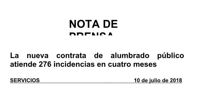 La nueva empresa concesionaria del mantenimiento y conservación del alumbrado público ha atendido durante los cuatro primeros meses del servicio, de marzo a junio, un total de 276 incidencias.