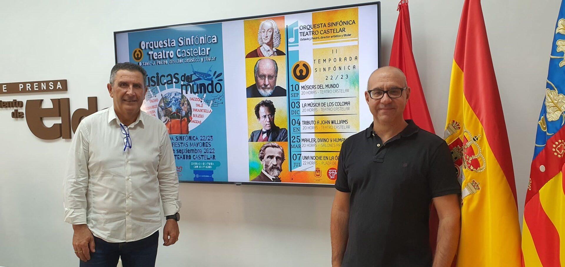 6 de septiembre de 2022.- El concejal de Cultura, Amado Navalón, ha presentado esta mañana el programa de conciertos de la Orquesta Sinfónica del Teatro Castelar (OSTC). El edil, que ha estado acompañado por Rafa Rico, presidente de la OSTC, ha afirmado que “plantear toda la temporada de nuestra Orquesta Sinfónica no es sencillo. Es una orquesta consolidada, que trabaja muy bien y con éxito en toda la provincia”.