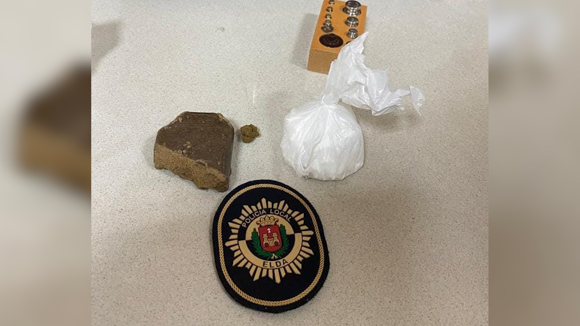 La Policía Local de Elda aprehende 100 gramos de coca y hachís y más de 1.000 euros en efectivo a un joven que conducía un coche sin carné y que trató de huir antes de ser detenido