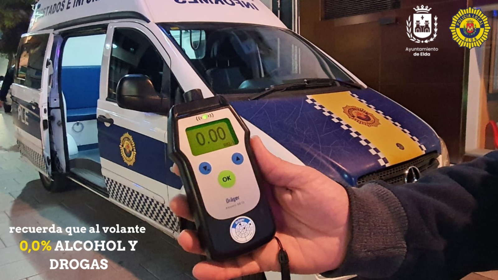 13 de diciembre de 2023.- La Dirección General de Tráfico (DGT) ha puesto en marcha esta semana una campaña de controles con el objetivo de reducir los factores de riesgo asociados a la conducción bajo los efectos del alcohol y de otras drogas. La Policía Local de Elda se ha sumado a esta campaña y durante los próximos días realizará controles para detectar el consumo de alcohol y de drogas en las fechas navideñas en las que se celebran las comidas y cenas de empresa.