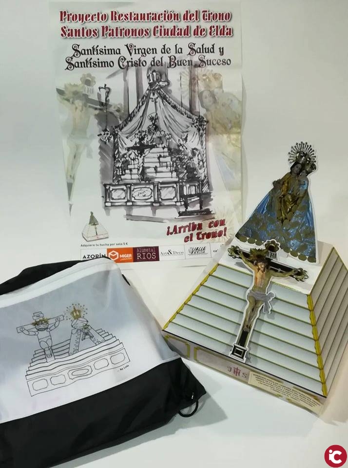 Para recaudar fondos se va a poner a la venta una mochila cuyo diseño ha creado la artista eldense Lola González, así como una réplica del trono y una hucha para solicitar a vecinos y comercios su donación. Parte de la recaudación de las mochilas también irá destinado a ayudar al aula de pediatría del hospital, donde actualmente colabora Lola González. Las bolsas costarán tres euros y se han hecho 1.200 unidades, mientras que el trono tendrá un coste de 5 euros. Además, han explicado que esta campaña concluirá tras la misa del día 6 de mayo y todas aquellas personas que hayan comprado los tronos recibirán unas imágenes del Cristo del Buen Suceso y la Virgen de la Salud bendecidos.