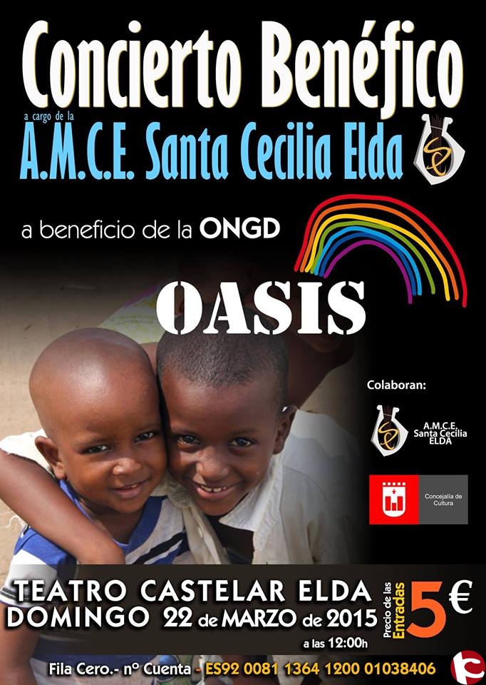 La Asociación Músico-Cultural Eldense Santa Cecilia ha puesto en marcha un concierto solidario que tendrá lugar el próximo domingo 22 de marzo a partir de las doce de la mañana en el Teatro Castelar de la ciudad, tal y como indicaba el titular de Cultura, José Francisco Mateos.