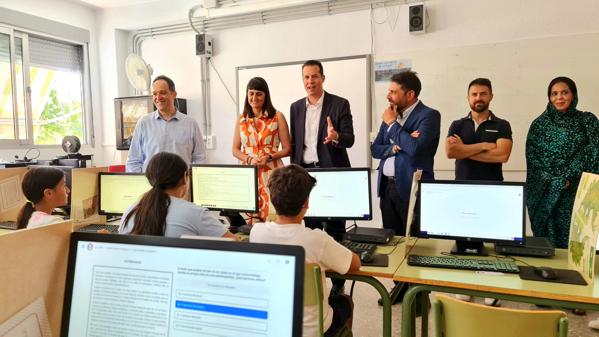 La secretaria de Estado de Telecomunicaciones e Infraestructuras Digitales, María González Veracruz, se ha desplazado hoy a Elda para conocer el proyecto de implantación de nuevas tecnologías en el CEIP Pintor Sorolla y visitar también las instalaciones de la empresa eldense Incom, situadas en el Polígono Industrial Finca Lacy.