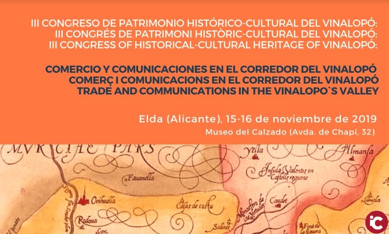La Sede Universitaria de la UA en Elda y la Concejalía de Patrimonio Histórico del Ayuntamiento de Elda, organizan el III Congreso del patrimonio Histórico-cultural del Vinalopó. Coordinado por Juan C. Márquez, arqueólogo municipal de Elda y dirigido por Leonardo Soler, profesor de Historia Medieval de la UA, el congreso se inaugura el viernes 15 de noviembre a las16 horas en el Museo del Calzado de Elda (Avda. de Chapí, 32). Durante tres jornadas (15,16 y 17 de noviembre) el Congreso tendrá como eje temático «El Comercio y las comunicaciones en el corredor del Vinalopó», estructurado en tres grandes bloques: Comercio y comunicaciones: dinámicas históricas; Redes de transporte y comunicaciones: del ferrocarril al corredor mediterráneo; y Mercados, comercio y patrimonio cultural.