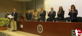 El solemne acto académico contó con la presencia del director de la sede, el presidente del patronato y alcalde de Elche, el rector de la UNED y la rectora honorífica que felicitaron al catedrático eldense por su gestión al mando de la sede en Elda.