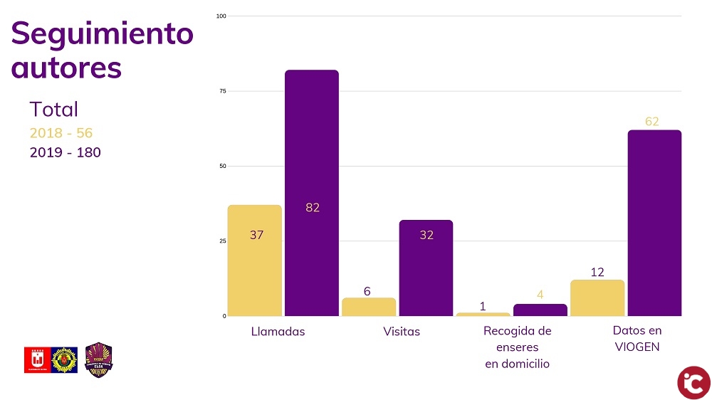 En relación al seguimiento a autores, en 2019 se hicieron 180 por 56 en el años 2018. De esta cifra, 82 corresponde a llamadas, 62 valoraciones en el sistema Viogen, 32 entrevistas y 4 recogidas de enseres. Juan Miguel Puentes ha destacado que el sistema integral de violencia de género se modificó y se hace un trabajo más específico.