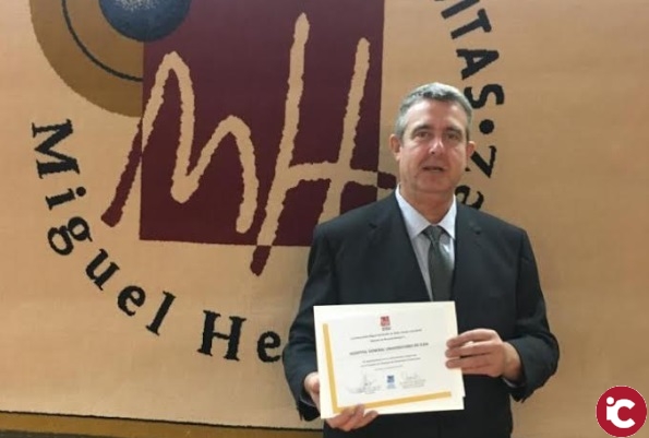 El Hospital General Universitario de Elda, como institución colaboradora, recibió de la Universidad Miguel Hernández un Diploma en agradecimiento y reconocimiento por su colaboración en la formación práctica de estudiantes de la UMH. Al acto asistió, en representación del Hospital, el secretario de su Comisión de Docencia, Juan José Sevila Sánchez,.