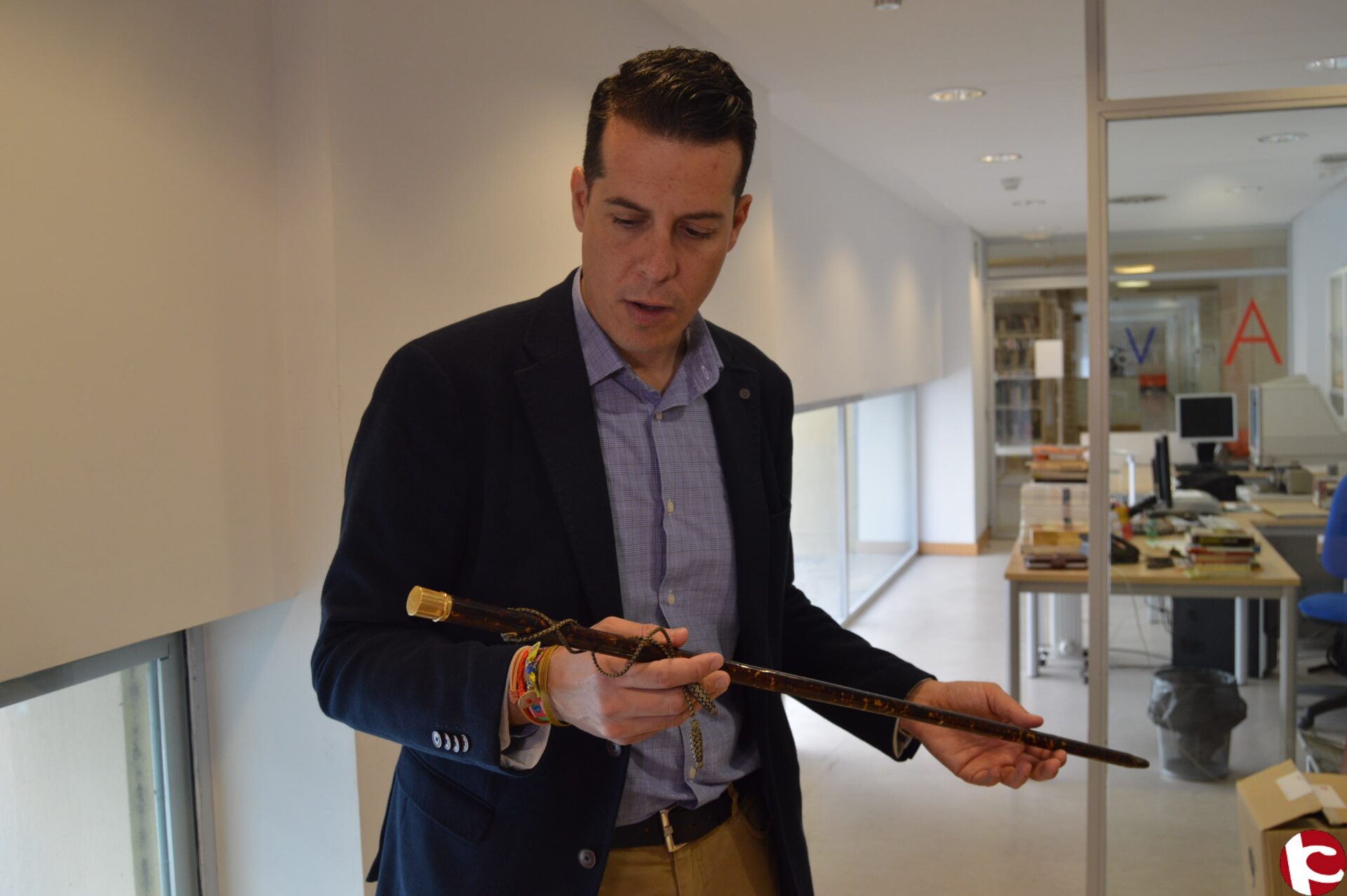 El alcalde, Rubén Alfaro ha estado hoy en el Archivo Histórico Municipal donde se custodia la vara de mando del presidente de la II República, Manuel Azaña, entre los años 1.936 y 1.939.