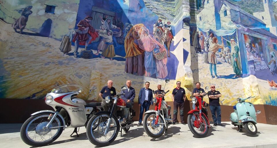 20 de abril de 2023.- El concejal de Patrimonio Histórico, Amado Navalón, y el presidente del Asociación Cultural Amigos de las Motos Antiguas de Elda, Ramón González, han presentado esta mañana la edición número 19 de la Vuelta ‘Ciudad de Elda’ de vehículos clásicos. Se trata de un rally que el próximo domingo 23 de abril recorrerá toda la comarca del Medio Vinalopó.