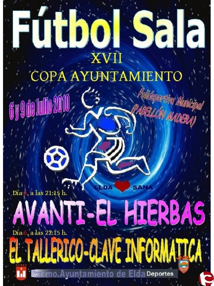 La XVII edición de la copa Ayuntamiento de Fútbol sala disputará las semifinales el 6 de julio y la final el día 9 en el Polideportivo Municipal (pabellón de madera)
