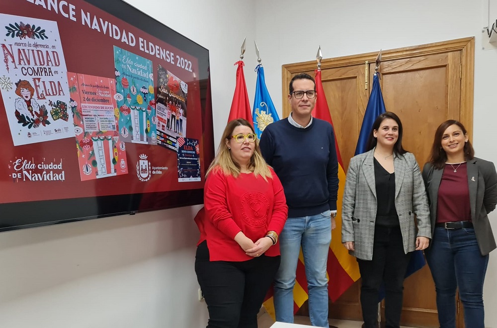 El regidor eldense ha estado acompañado en su comparecencia por las concejalas de Fiestas, Lorena Pedrero, y de Comercio y Mercados, Silvia Ibáñez, así como por la representante de la Asociación de Empresarios de Elda (AEDE), Rocío Vera.