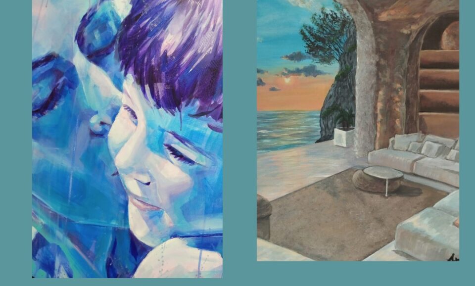 La analogía entre ambas surge, más allá del nombre, en su paleta cromática dominada por los azules, una elección que refleja el amor compartido por la naturaleza y, especialmente, por el mar Mediterráneo. Además, las dos artistas emplean el acrílico como técnica principal, lo que genera una sutil armonía entre sus trabajos.