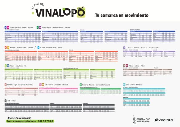En concreto, la red de autobús inteurbano que opera en la comarca pasará a denominarse Bus del Vinalopó y contará con más frecuencias. Además de mejorar la conectividad del Alto y Medio Vinalopó con Elche y Alicante mediante 16 líneas regulares, mejorará las conexiones de las dos líneas metropolitanas (M1 y M2) que conectan Elda con Petrer y Monóvar y que recuperan los servicios que se ofrecían hace unos años. Además, habrá conexiones con los hospitales de Elda y del Vinalopó, así como con la Universidad de Alicante.