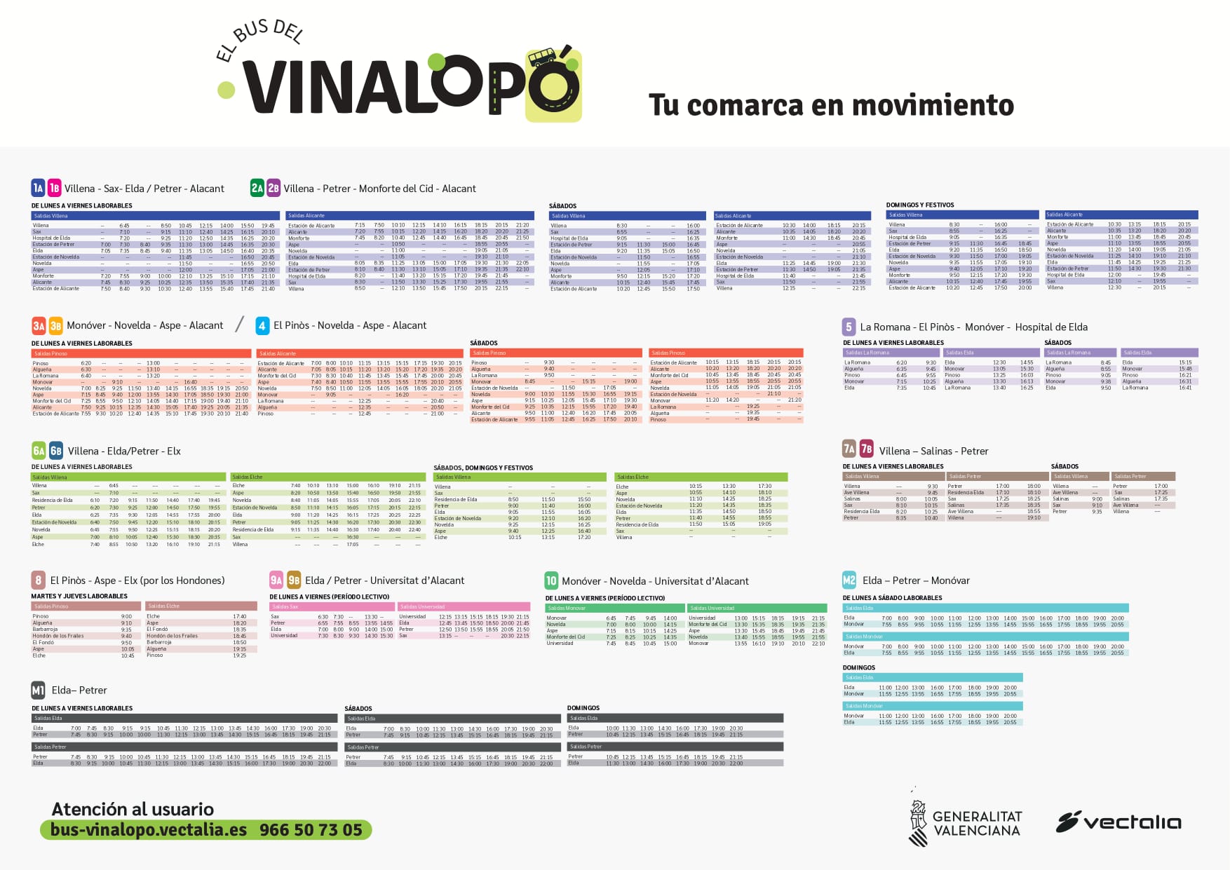 Toda la información sobre horarios, frecuencias y recorridos estará disponible en la página web de Vectalia (https://movilidad.vectalia.es/rutas/).