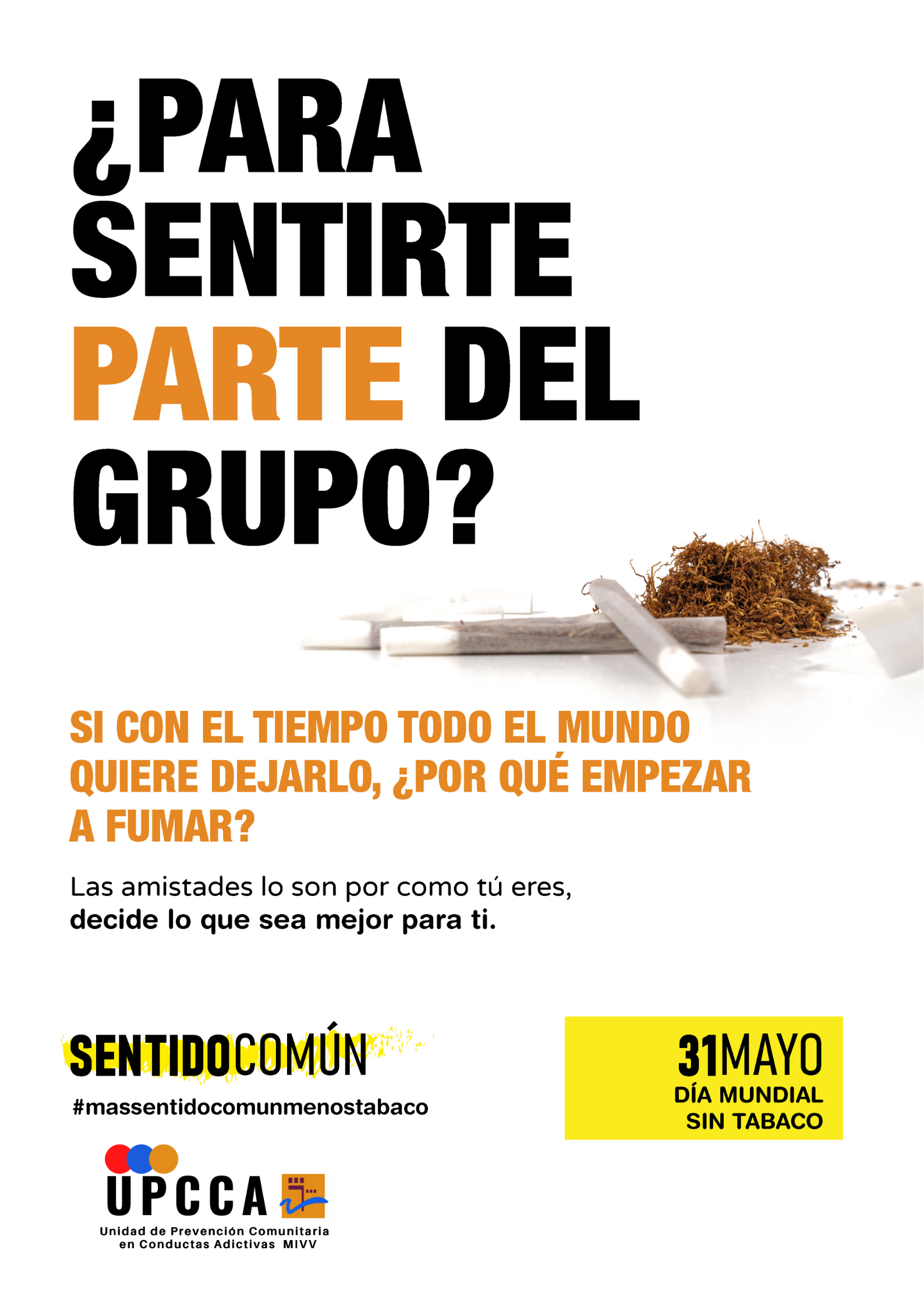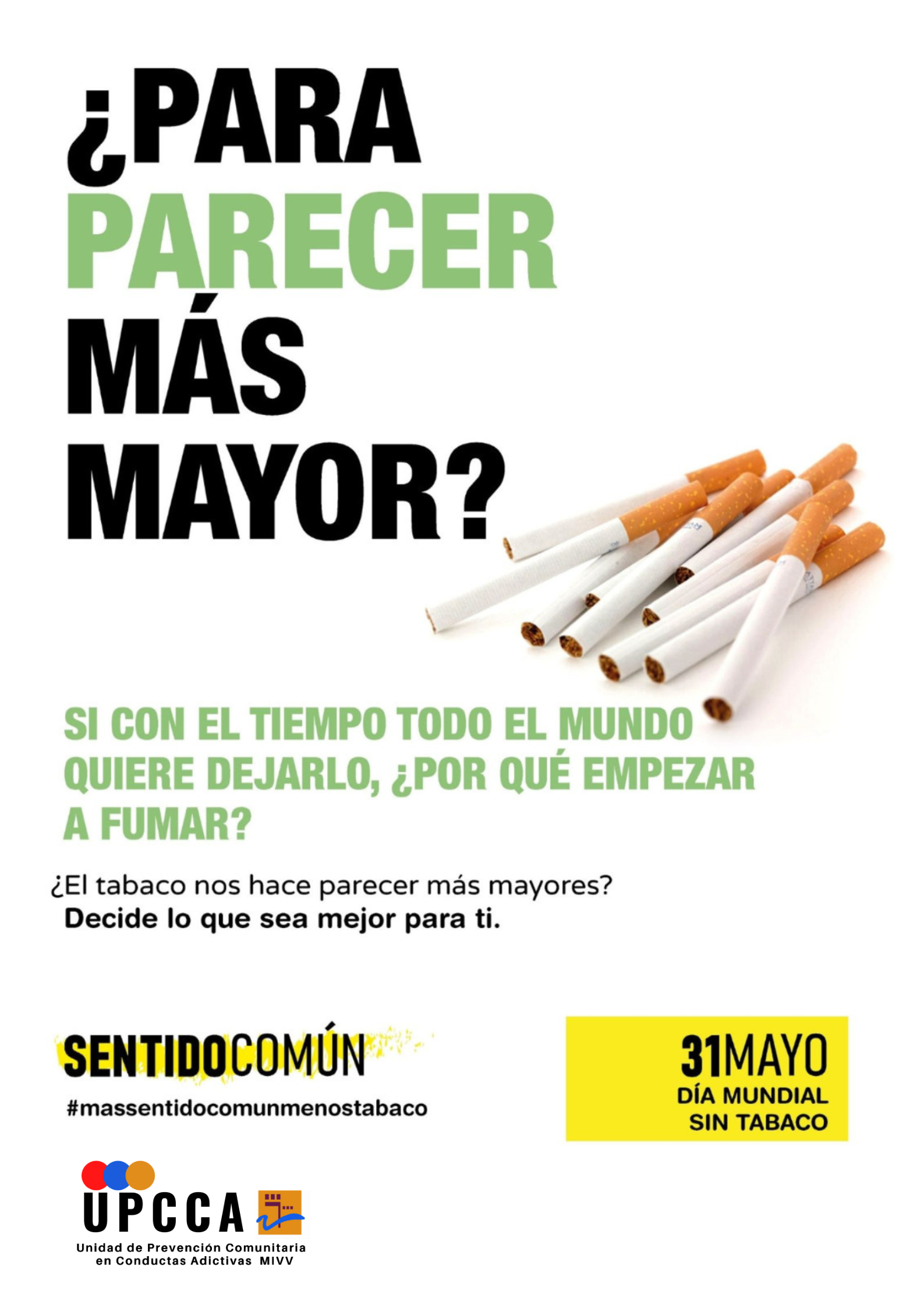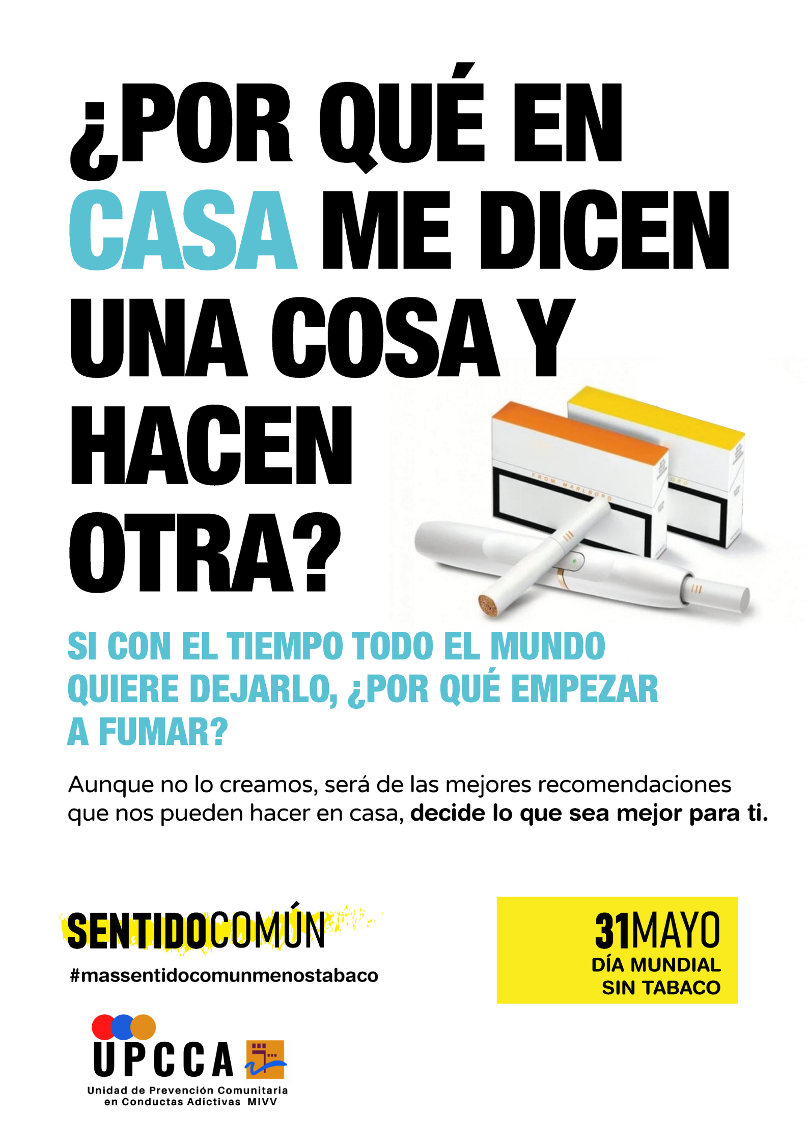 Las UPCCAs en Red de la Comunidad Valenciana de la cual forma parte la UPCCA de la MIVV, lanzamos la campaña de concienciación y sensibilización para el 31 de mayo, Día Mundial sin tabaco, con el lema “Más sentido común, menos tabaco”, este día es propuesto en el año 1987 por la Organización Mundial de la Salud (OMS).