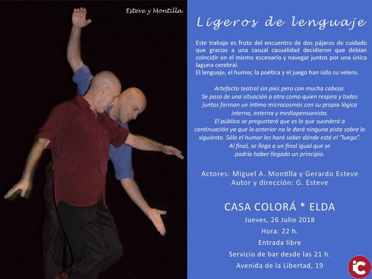 La Casa Colorá de Elda acogerá el próximo 26 de julio de 2018 a las 22:00 la obra «Ligeros de lenguaje».