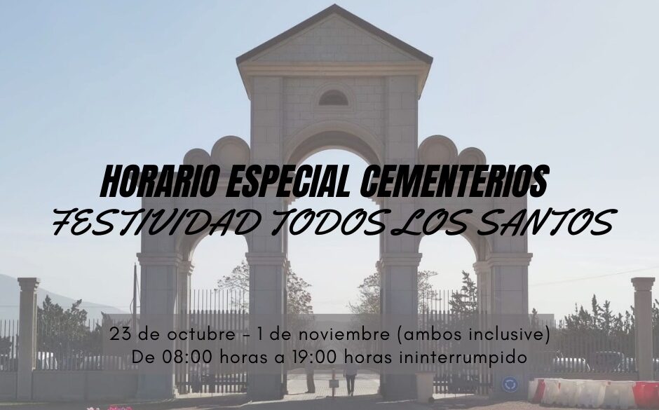 22 de octubre de 2021.- La Concejalía de Inversiones y Servicios Públicos Sostenibles del Ayuntamiento de Elda ha realizado un ajuste en el horario de los dos cementerios municipales de la ciudad para facilitar el acceso a los familiares y amigos de los fallecidos de cara a la próxima festividad de Todos los Santos.