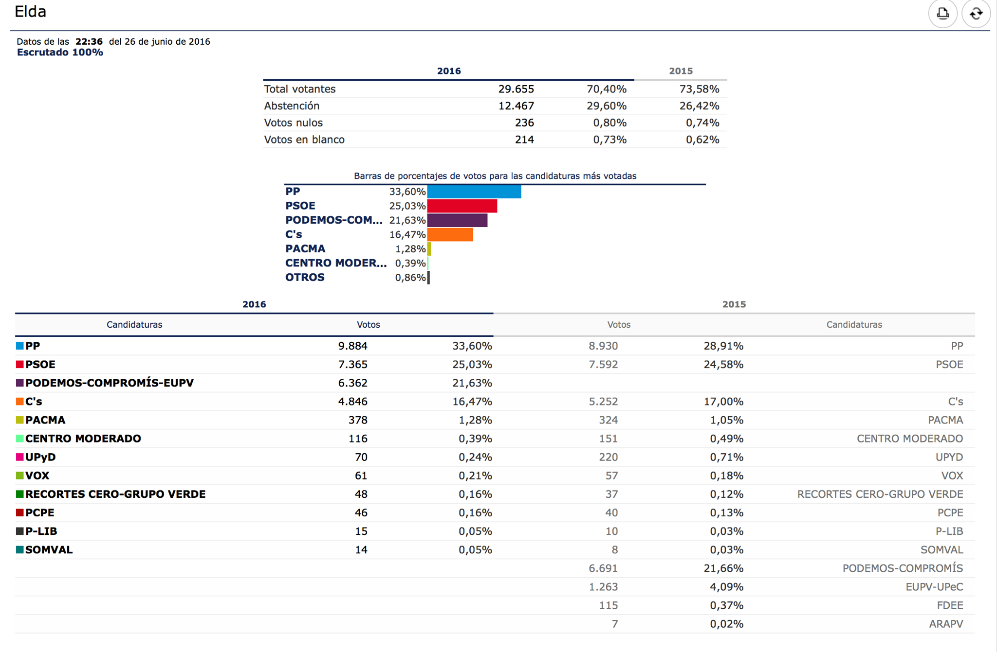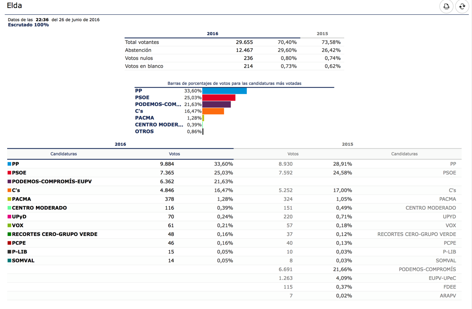 Tras la resaca electoral que nos dejó ayer la intensa jornada de votación en el país, esta misma mañana la mayoría de grupos municipales en Elda han querido realizar una valoración de resultados. Unos datos nada esperados si se mantenía fe en los ganadores de las encuestas que apuntaban un sorpaso de la unión de Podemos, IU y Compromís al PSOE y que finalmente no se produjo.