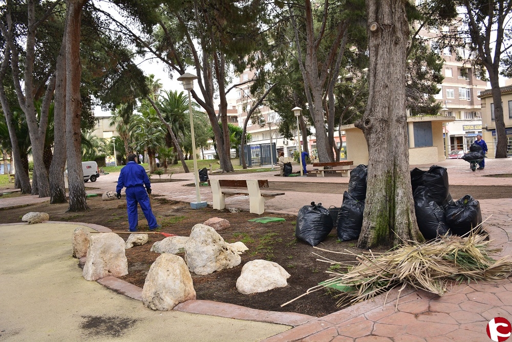 Durante las tres semanas que lleva en marcha el plan han desbrozado toda la avenida del Centro Excursionista, han limpiado el jardín de la Ribera, la zona verde en las inmediaciones del Peter Rives, las rotondas carretera Monóvar, los parterres del Museo del Calzado, la Casa Colorá y otras zonas verdes de la población. El objetivo es actuar en todos los parques, jardines y calles con árboles y arbustos de la ciudad, donde se calcula que hay unos 16.000 árboles públicos y alrededor de 1.600 ejemplares de masa arbórea ornamental.