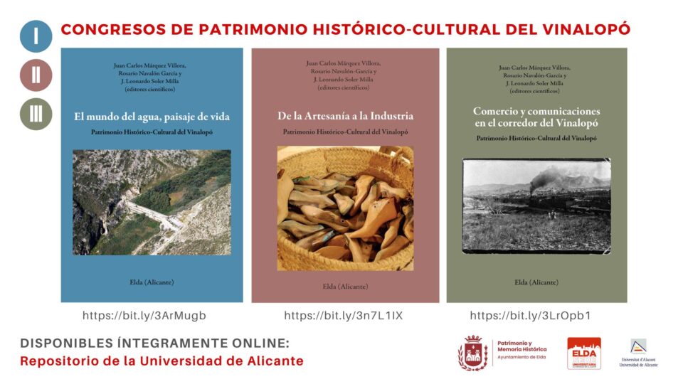 Los libros resultantes de los tres primeros Congreso del Patrimonio Histórico-cultural del Vinalopó, entre los años 2016 y 2018, ya están disponibles en el repositorio bibliográfico de la Universidad de Alicante, de forma online, sencilla y gratuita para quien lo desee.